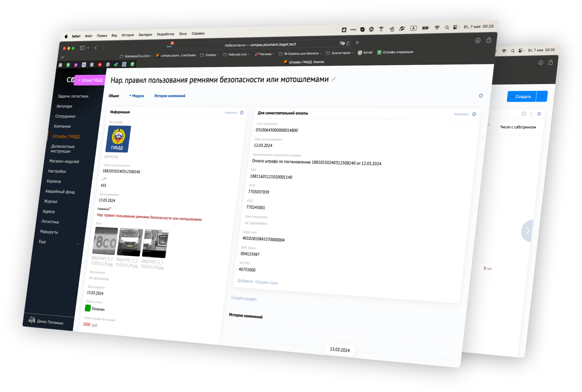 Сервис «Compas.pro» собирает данные из официальных источников: ГИБДД, МАДИ, АМПП, ГИС ГМП. После проверки вы получите общее количество и сумму всех штрафов. Отчет также включает историю штрафов и детальную информацию по каждому нарушению ГИБДД.